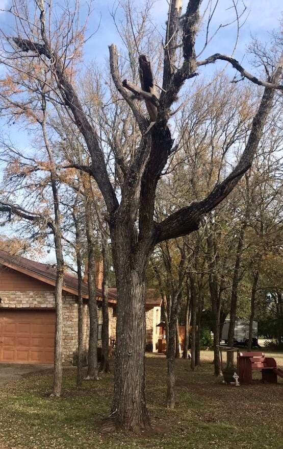 Before and After-Cutting down a dangerous tree. The neighbors even came to inspect our work.